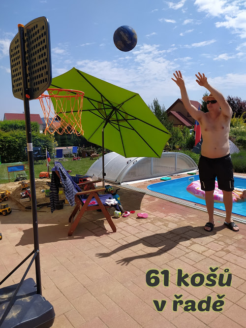 V Hněvousicích normální míč, vzdálenost 2,4 m a výška obroučky 1,8 m.